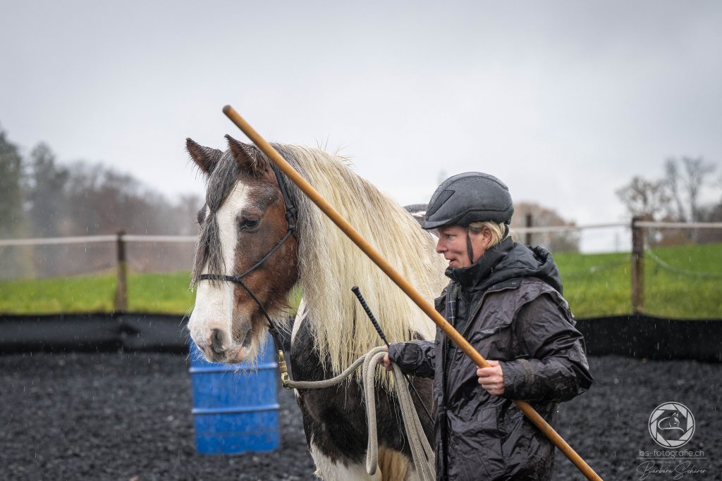 Am 2.11.2025 fand ein Working Equitation Kurs beim Reitverein Uttigen statt mit Team Lotti & Fee (Annika Beutler). Dieser war begleitet von sehr viel Regen. Trotzdem waren die Teilnehmer:innen mit grosser Motivation dabei und es hat auch noch Spass gemacht. Klar, zum Fotografieren wünscht man sich eine etwas freundlichere Kulisse, aber was solls – wir wurden mit warmen Getränken versorgt und haben es trotzdem genossen.